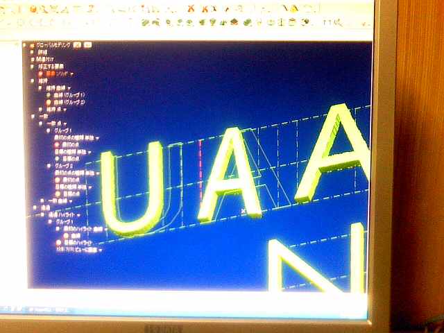 みたいな仕事で、文字をソリッドでモデリングしたのですが、ワク線の中に納めないといけないという制約からGSMでソリッドを曲げて押し込みました。