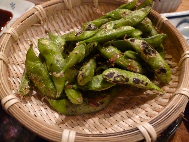 茶豆の枝豆。鉄板で焼いて、バーナーで炙ってあります。