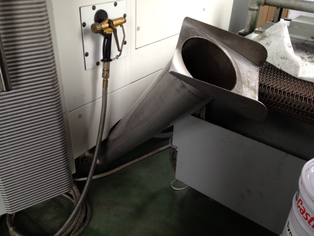 材質の切り替えをするときはチップコンベアのなかのキリコをある程度スコップで外に出して軽くしてからチップコンベアを外し、コイルコンベアで残りのものを吐き出すという。。。。