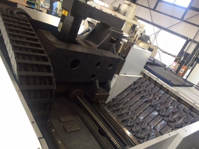 テーブルの手前側で加工すると、主軸アタマがにょいーんとのびて、片持ちテーブルの先端で加工することになるので力学的には極めて不利な状況になります。