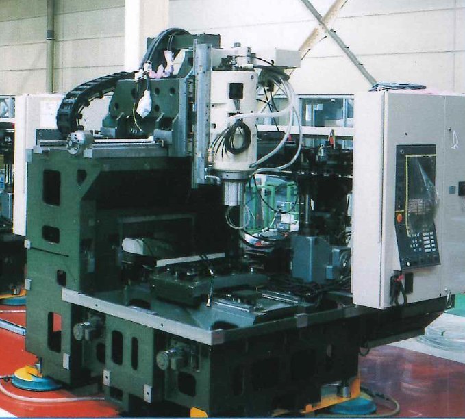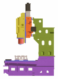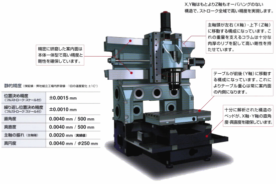 ゲタの上にさらにY軸とB軸と主軸が載ってて、Z軸はテーブル昇降という変わった軸構成の機械です。