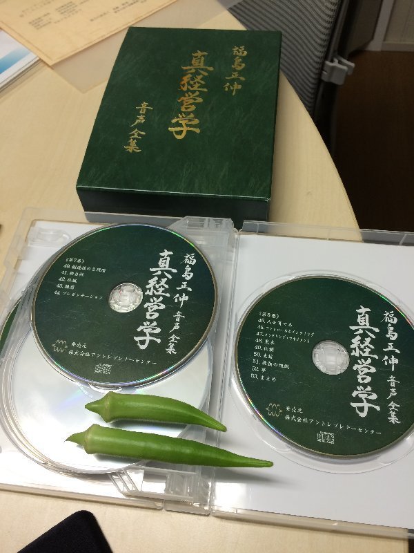 写真にあるオクラはCDの大きさが分からないといけないと思って、サイズ比較用に置いておきました。