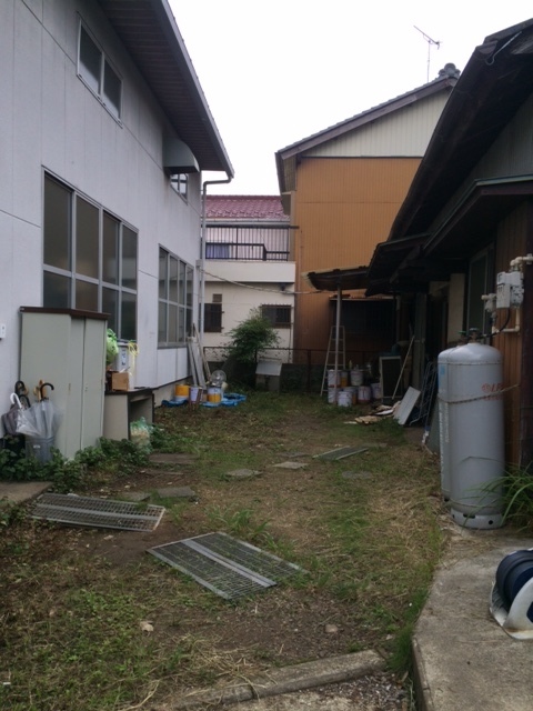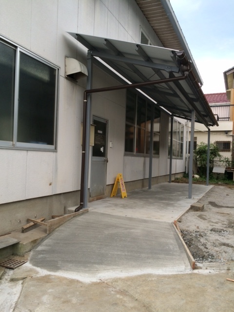 裏口のまわりが雨が降ると大変だったので、せっかくだからこっちも屋根でカバーしたい、お、そういえば石窯用の薪置き場もつくりたいぞ、とか言って調子に乗って600 x 800のコンプレッサ面積に対して2000 x 8000のサイズに作ってもらいました。