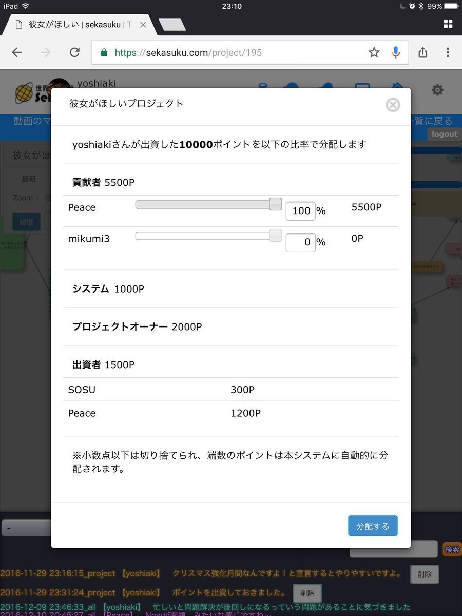 こんな感じで貢献度を決めてお礼ポイントを分配する仕組みになっています。
