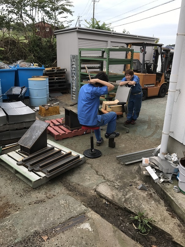 棚とか材料とか工具類とか、設備の移動前にたくさん工場外に出しておかないと行けなかったのですが、社員さんみんなが協力してやってくれました。