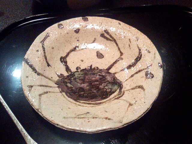 この旅館は北大路魯山人さんと縁が深いとのことで、魯山人が初めてつくったお皿とか、やたらデカイからすの襖絵とかがおいてありました。