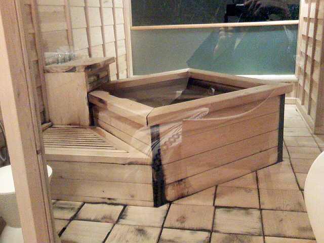 渡り廊下をわたっていく人たちを眺めながらお風呂に入れます。